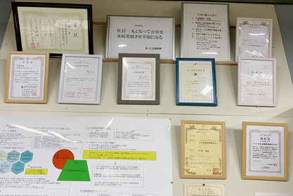 弊社では、技能向上の為のセミナーや職業訓練の参加、資格試験などを積極的に受験することにより、社員の成長と自主性のバックアップ支援をしております。
