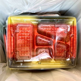 弊社では新しい取り組みとしてお弁当の容器を水洗いして業者に回収してもらうことによってリサイクルに役立てています。