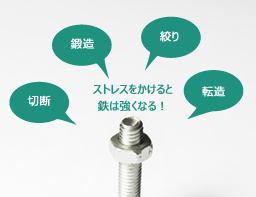 お客さん、それは「加工硬化」という現象で大部分の金属は叩く、捻るなどの圧力をかけることで硬くなり強くなる性質をもっているんです。