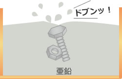 亜鉛を450℃付近でとかして、その中にネジなどを1分ほどつけますと亜鉛被膜がつきます。(ドブン)とつけるところからその名がついたようです。