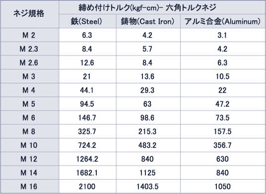 お客さんの言うとおり締め付け力は大きいほどよいのですが、限度を超える力で締め付けると相手材に損傷がおきたりネジ山が壊れ、ゆるみの原因となります。材質、精度、強度、表面処理により締め付けトルクは異なってきますが適正値があります。必要ならば表がありますのでお渡ししますよ。