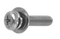 セムスネジ=座金組み込みねじといいます。座金を入れておいてからネジ部を転造して座金が外れないように加工したネジで、締結時に座金を入れる手間を省くことができるので作業の効率がUPします。一般的にはナベ頭が多いですがトラス頭、バインド頭、六角ボルトやCAPボルトなどに組み込んだものもあります。