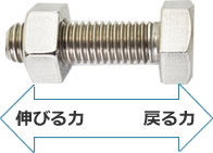 ボルトのゆるみは締付けによって生じる軸力(反発力=引張力)が低下することによっておこります。