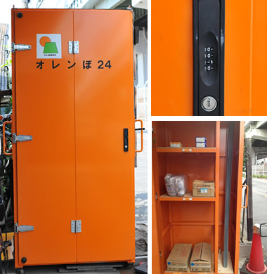 オレンぼ24はお客様からご注文頂いた商品を 24 時間休日問わず引き取り可能な商品保管BOXで弊社の軒先に設置してあります。